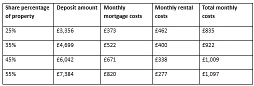 As you can see, the higher your share of the property, the more your total monthly costs could be. However, you would also own more of your home and pay less rent. Depending on your circumstances, you might find it worthwhile to increase your deposit to purchase a larger share.